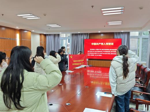 随后,支部进入预备党员接收环节。首先,待接收为预备党员的方成富同志介绍了自己的个人情况和入党动机,并表达了自己的入党意愿。之后,两位入党介绍人对方成富同志的优缺点展开评价,并表示愿意介绍其为预备党员。经过与会党员举手表决,支部全票通过,顺利接收方成富同志为预备党员。最后由支部书记蔡老师带领全体党员及方成富同志宣读入党誓词。